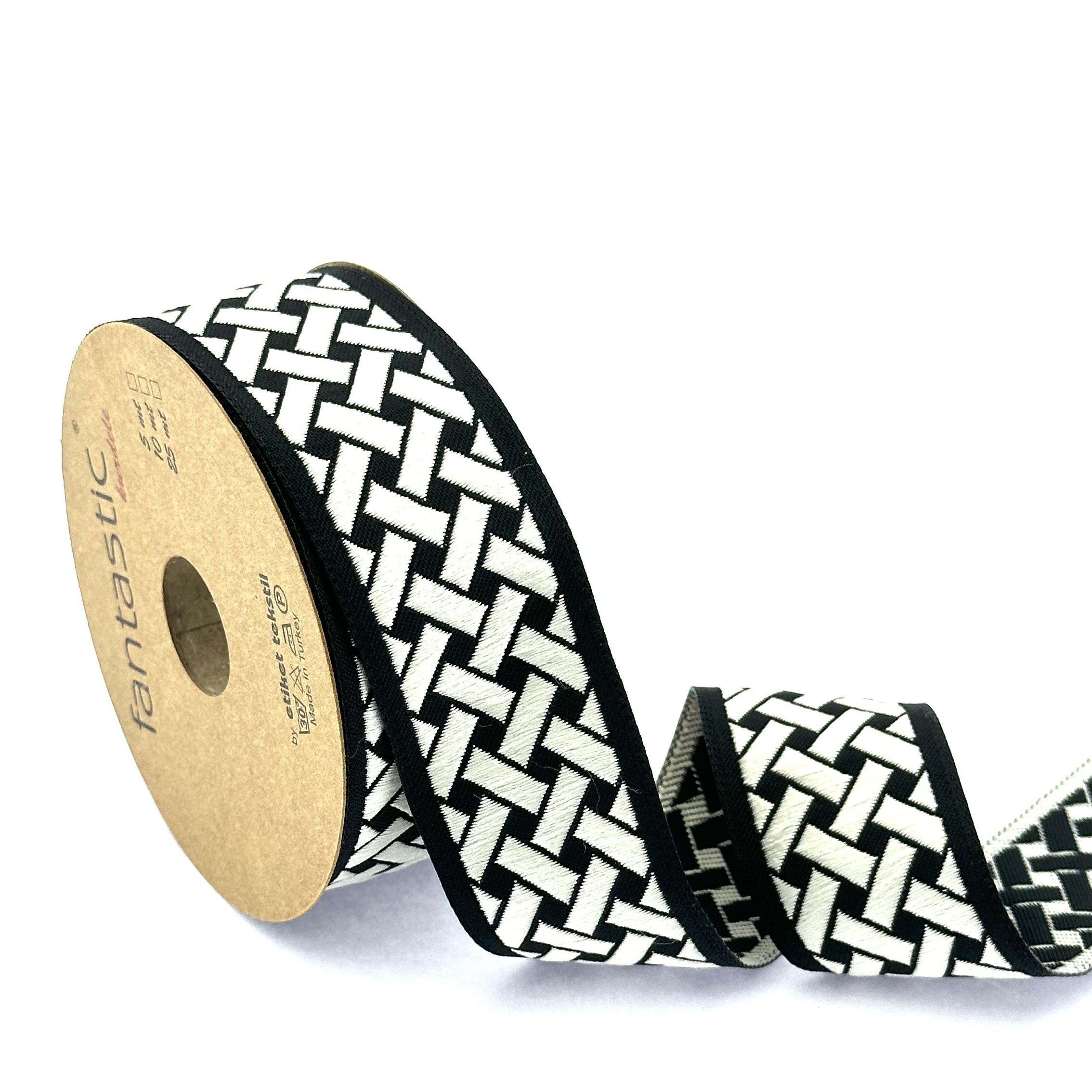 Black and White Geometric Jacquard Ribbon for Home Decor and Clothing Embellishment