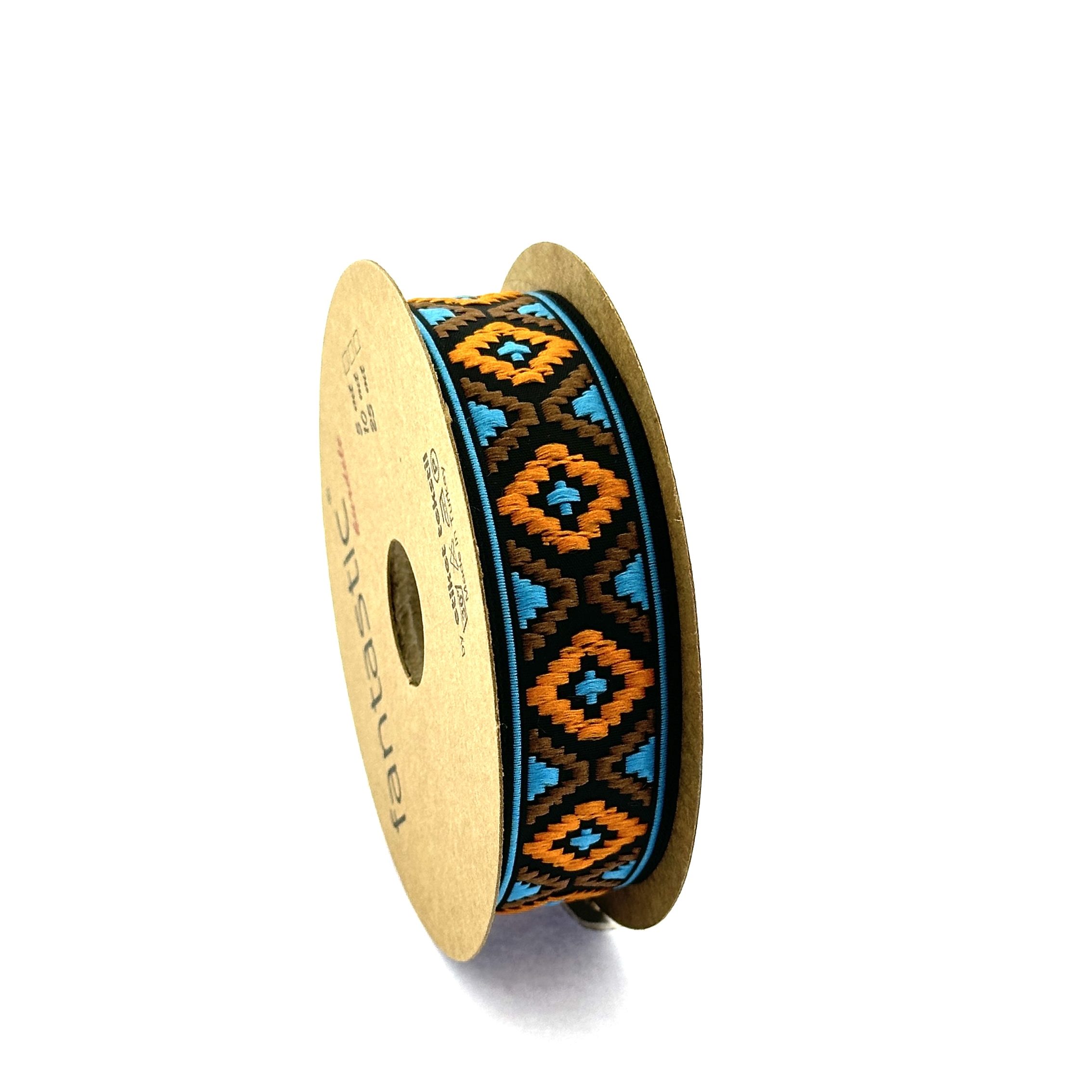 These stylish jacquard ribbons are perfect for bag embellishment. This beautiful jacquard ribbon adds a touch of class and beauty to your sewing crafts and DIY projects. This trim is perfect for making clothing accessories and home decor. The decorative trim is a must-have for people who love sewing because it can be used to add a lot of different styles to fabrics.